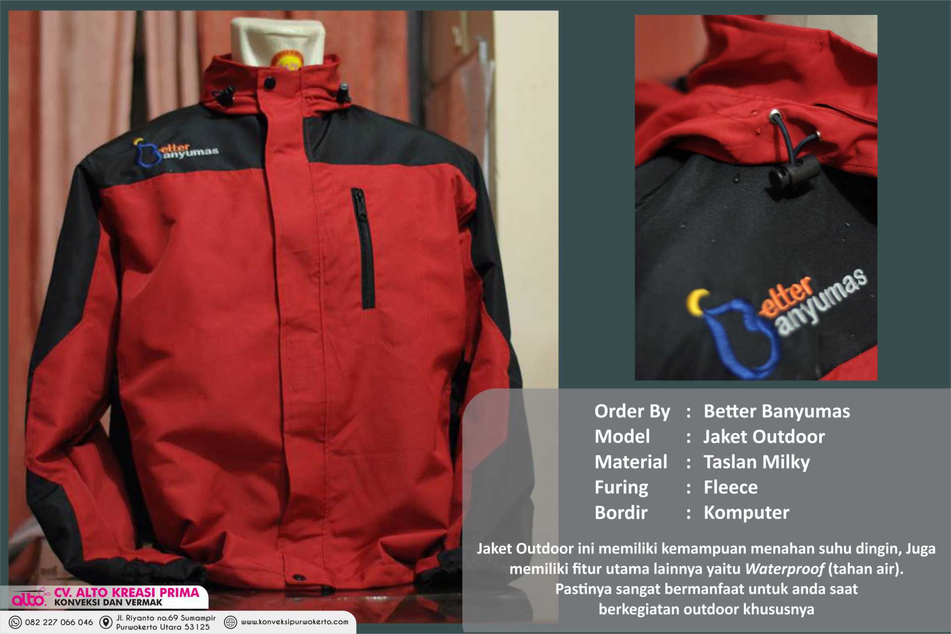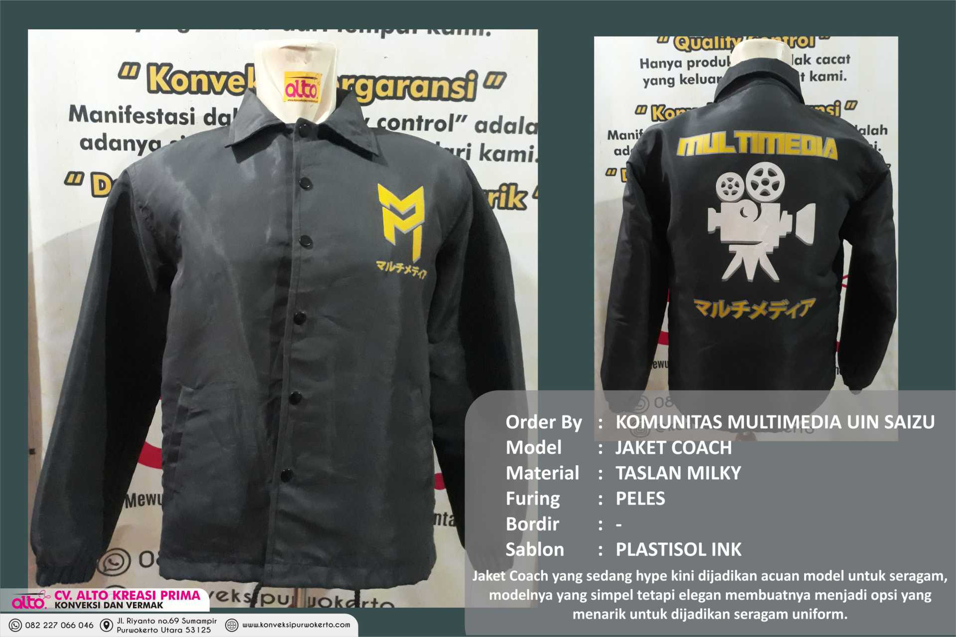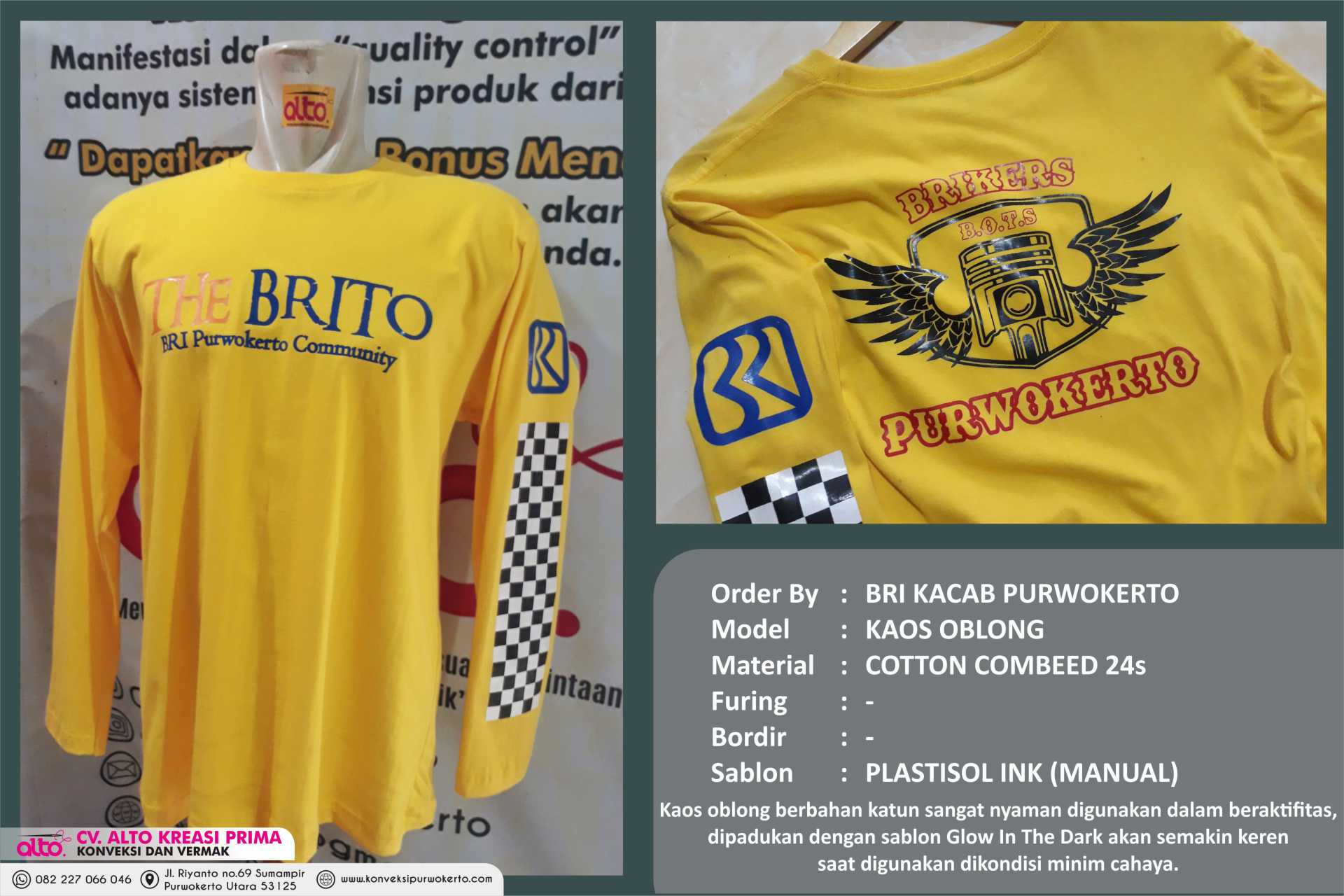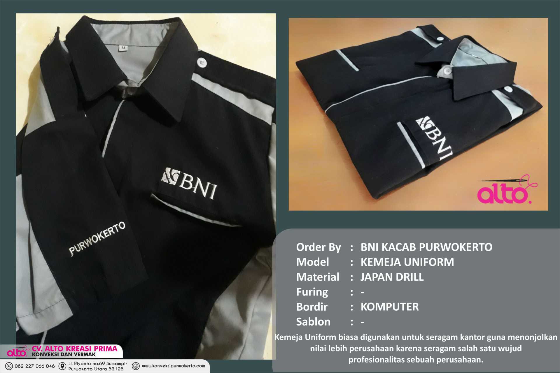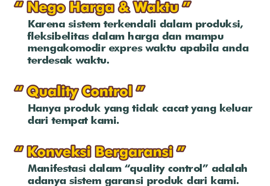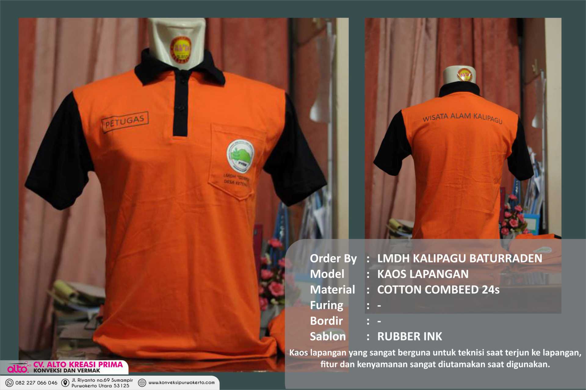 CV. ALTO KREASI PRIMA adalah perusahaan yang bergerak dibidang jasa khususnya jasa Konveksi sablon dan bordir , atas kepercayaan dari konsumen yang masih bekerjasama dengan kami seperti instansi pemerintah, perusahaan swasta, sekolah, maupun individual. Kami sangat menjaga dalam hal kualitas dan ketepatan waktu.