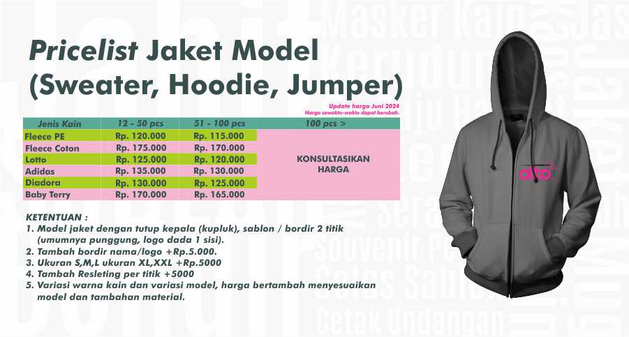 Berikut katalog harga sebagai panduan,